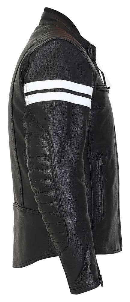 The Huron leather motorcycle jacket is a fine looking piece of kit crafted in robust yet supple genuine cowhide with contrasting white leather trim.
